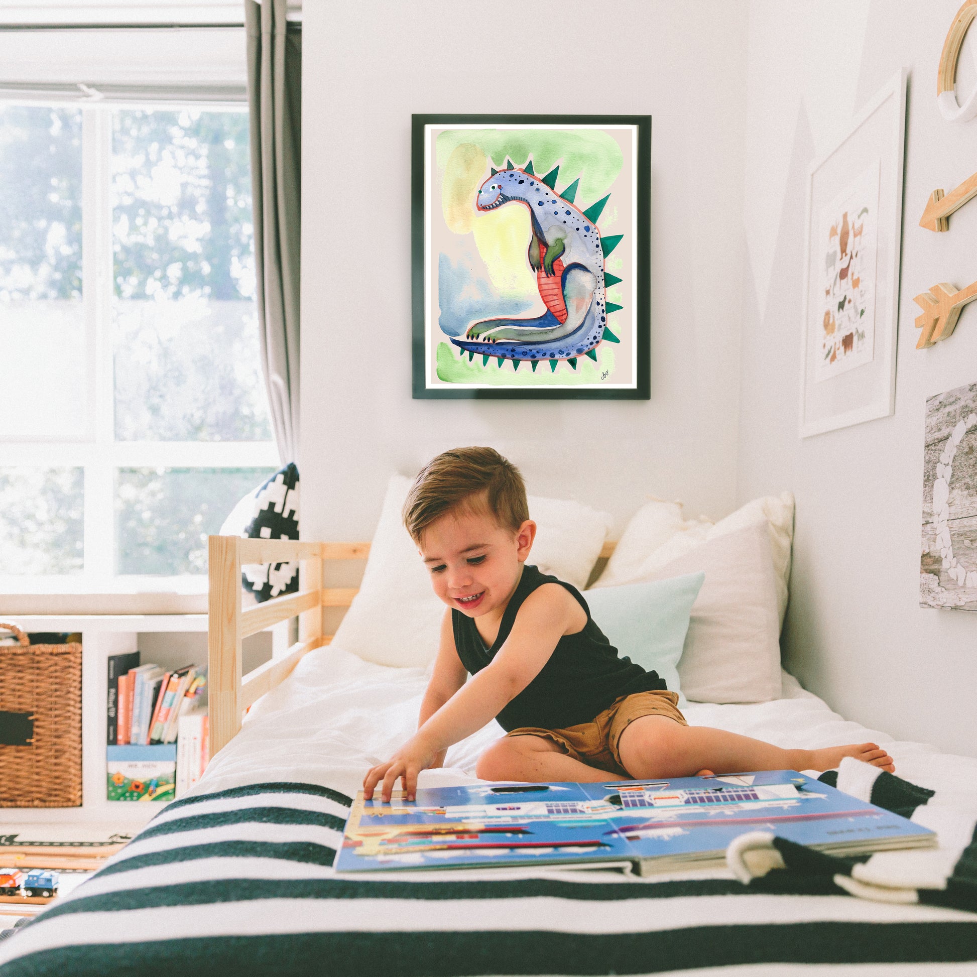 Each dinosaur is lovingly hand-painted in soft, cheerful watercolors, combining artistic detail that’s ideal for young children. Whether you're curating a dinosaur-themed nursery or simply adding a touch of fun to your little one’s room, these prints offer a fresh, contemporary take on classic childhood favorites.