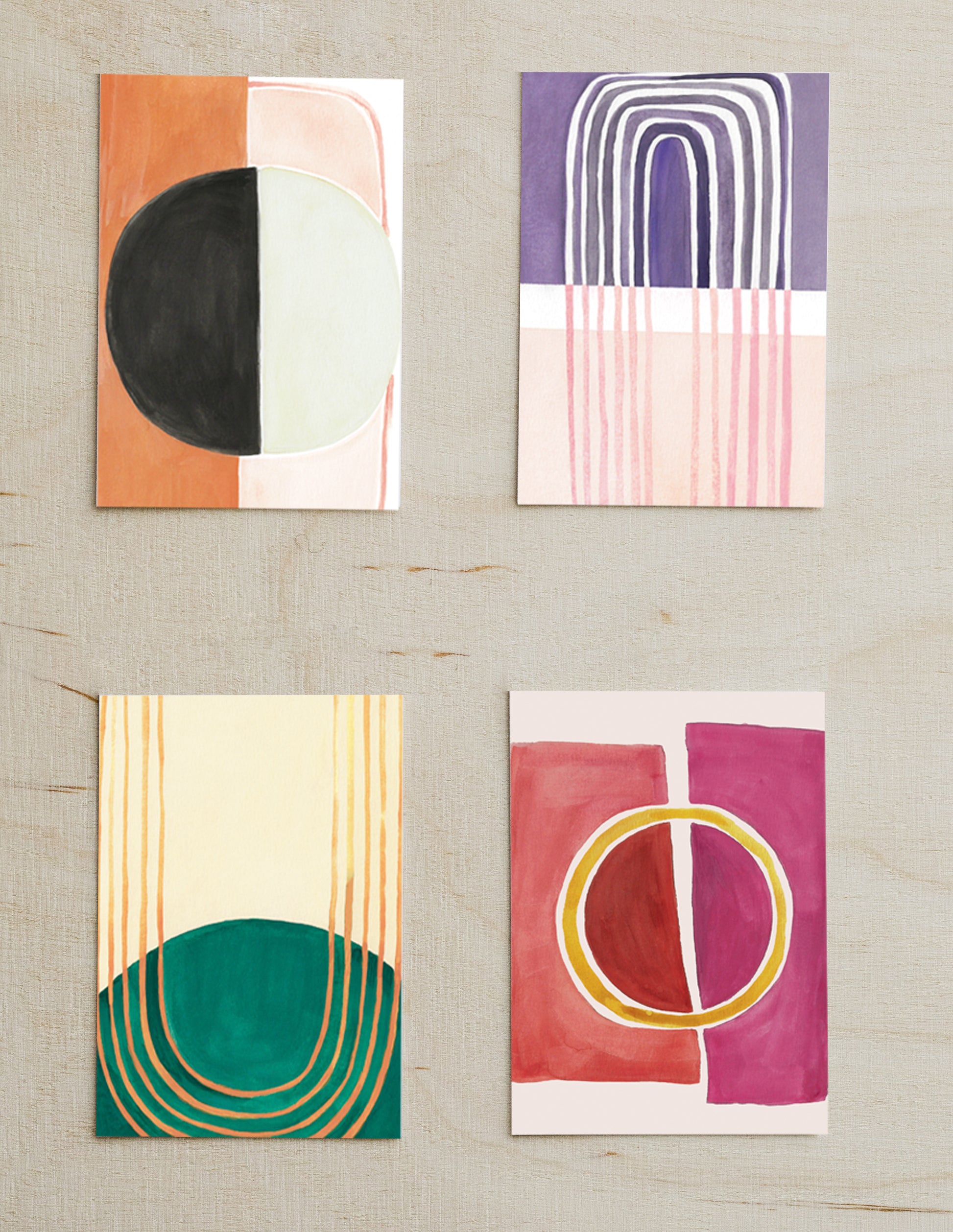 This set of four vibrant mid century modern inspired pieces were specifically painted to bring in a wave of fresh air, inspire change and channel new energy.