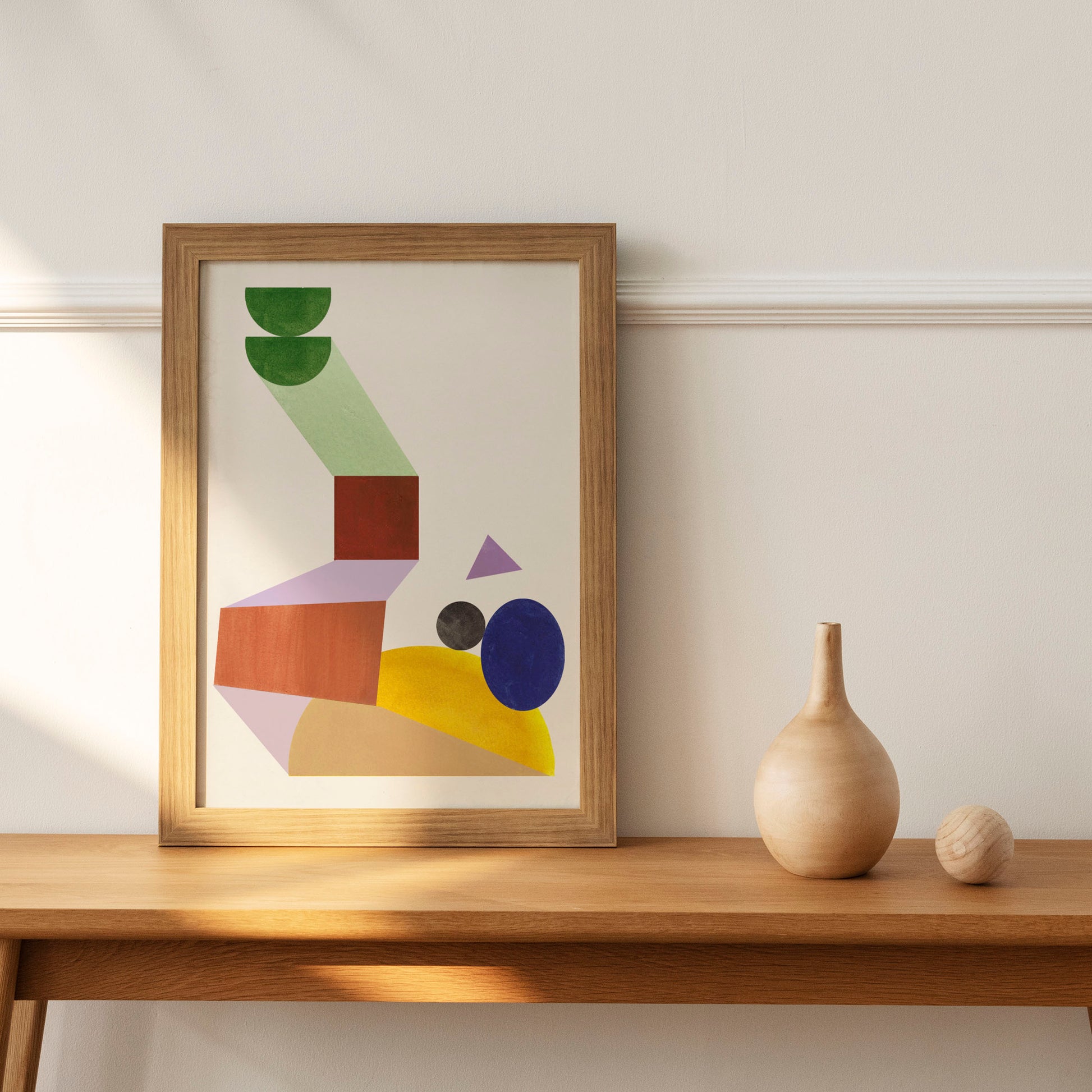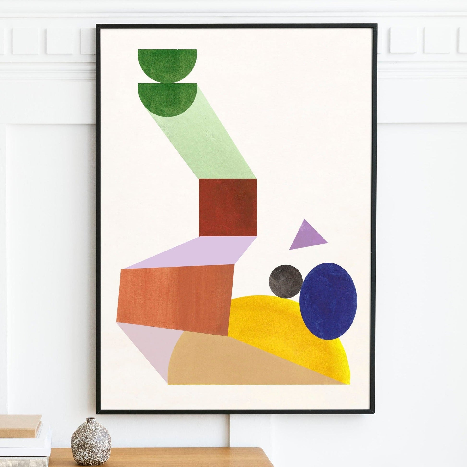 Space Jump II, 2022 by Cristina Bartl is part of a set of two paintings. This set of two vibrant mid century modern inspired pieces will bring a playful vibe with its color combination and geometric shapes.