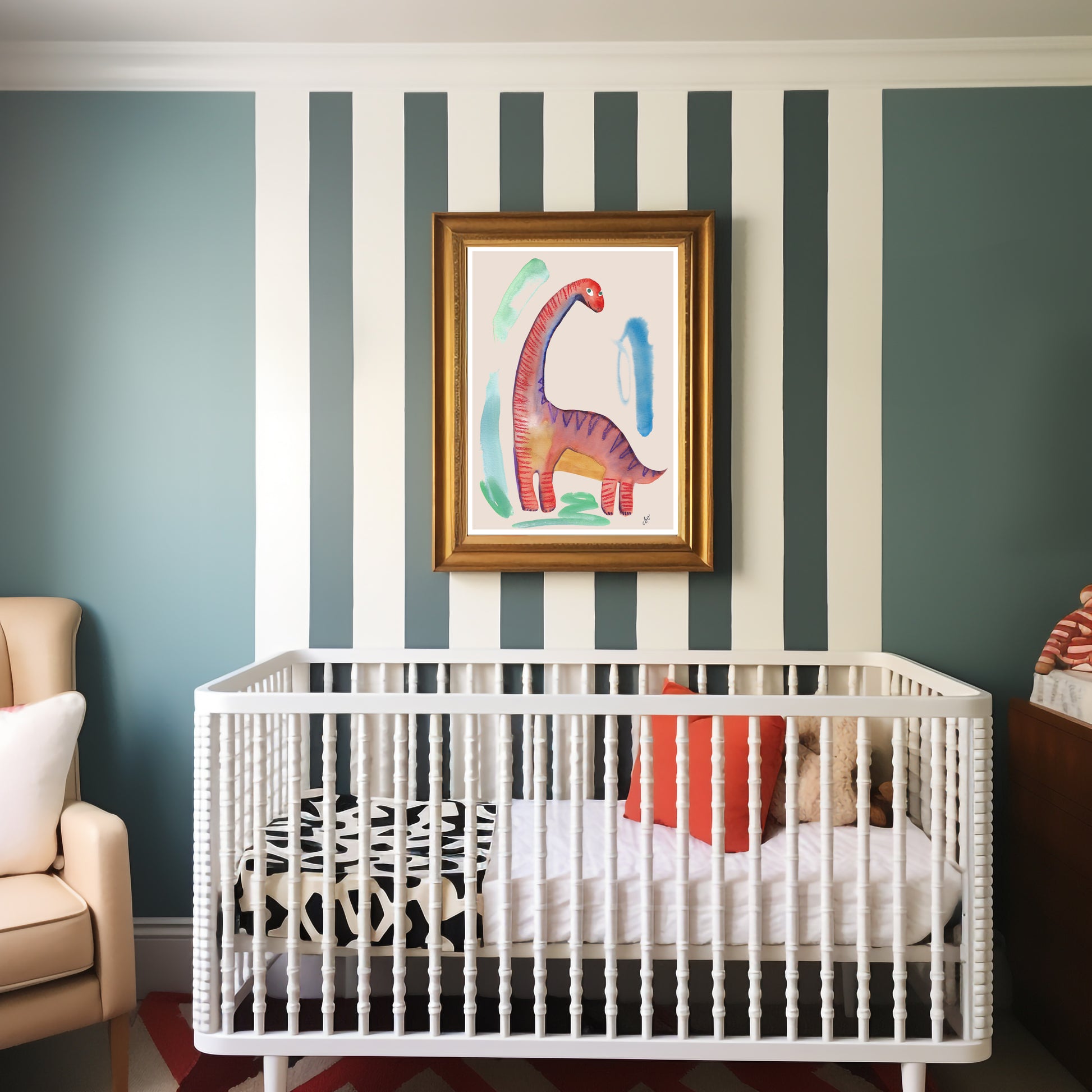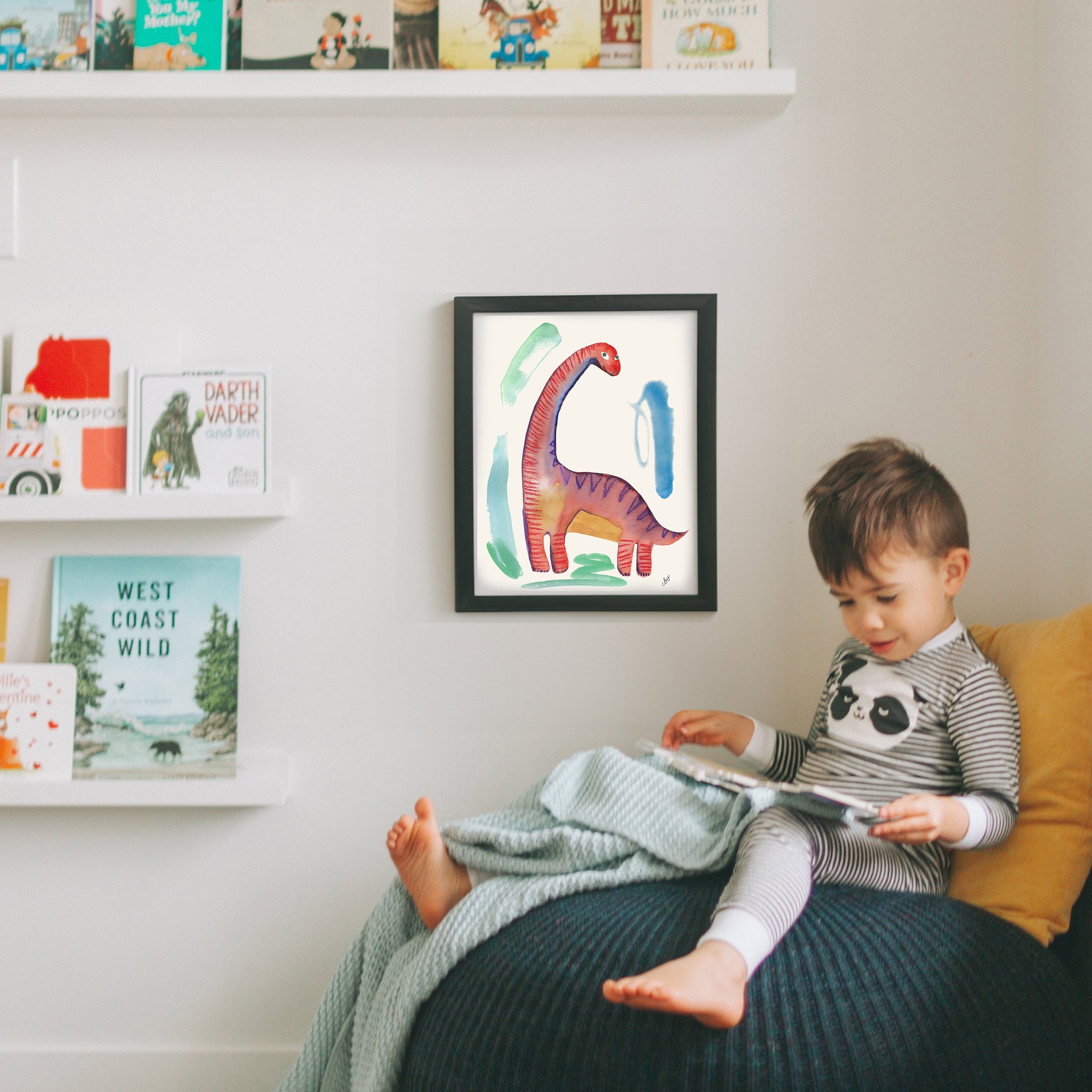 Each dinosaur is lovingly hand-painted in soft, cheerful watercolors, combining artistic detail that’s ideal for young children. Whether you're curating a dinosaur-themed nursery or simply adding a touch of fun to your little one’s room, these prints offer a fresh, contemporary take on classic childhood favorites.