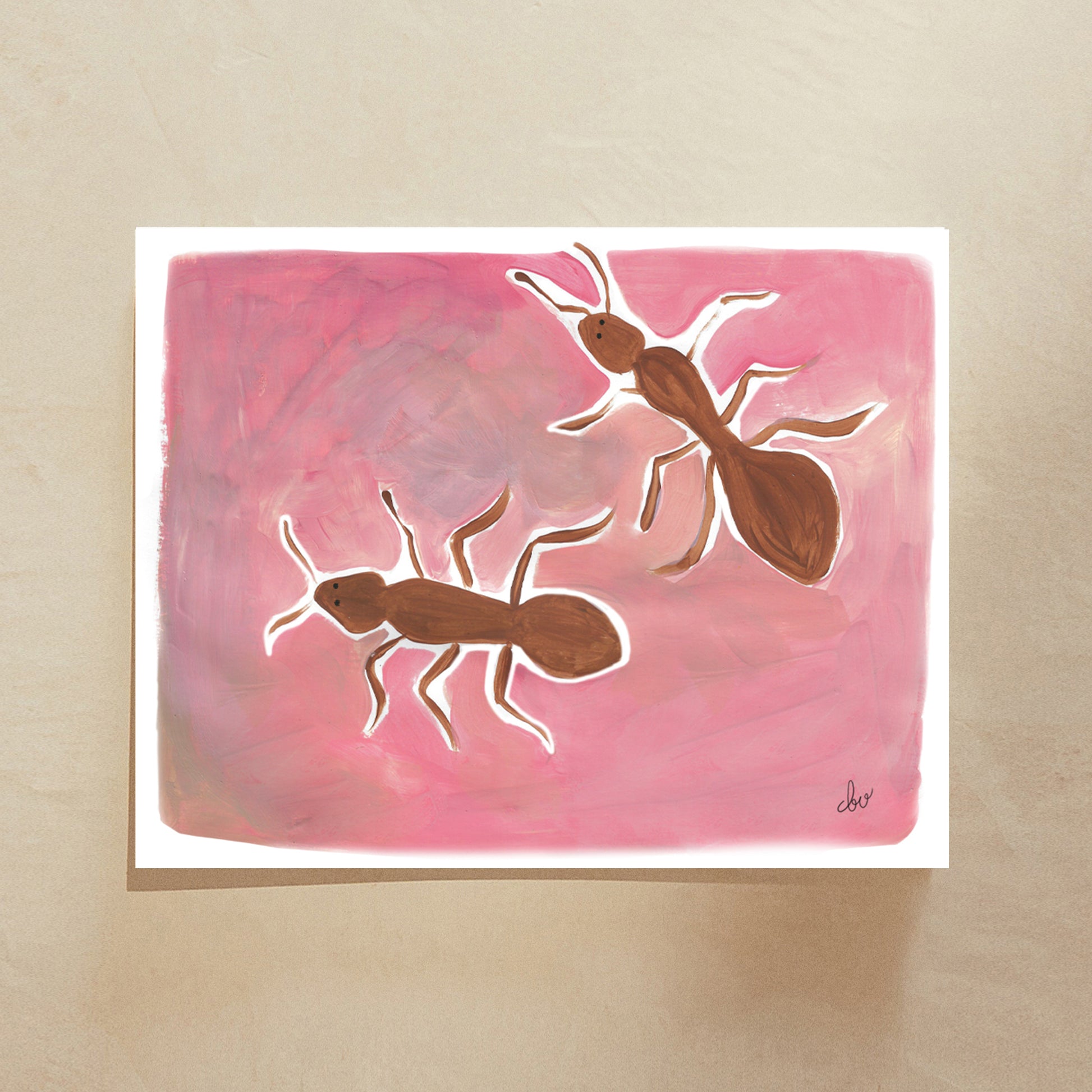 Title: "Ants" originally painted in my home studio in Summit, New Jersey. Hand painted using watercolors and gouache on archival watercolor paper.