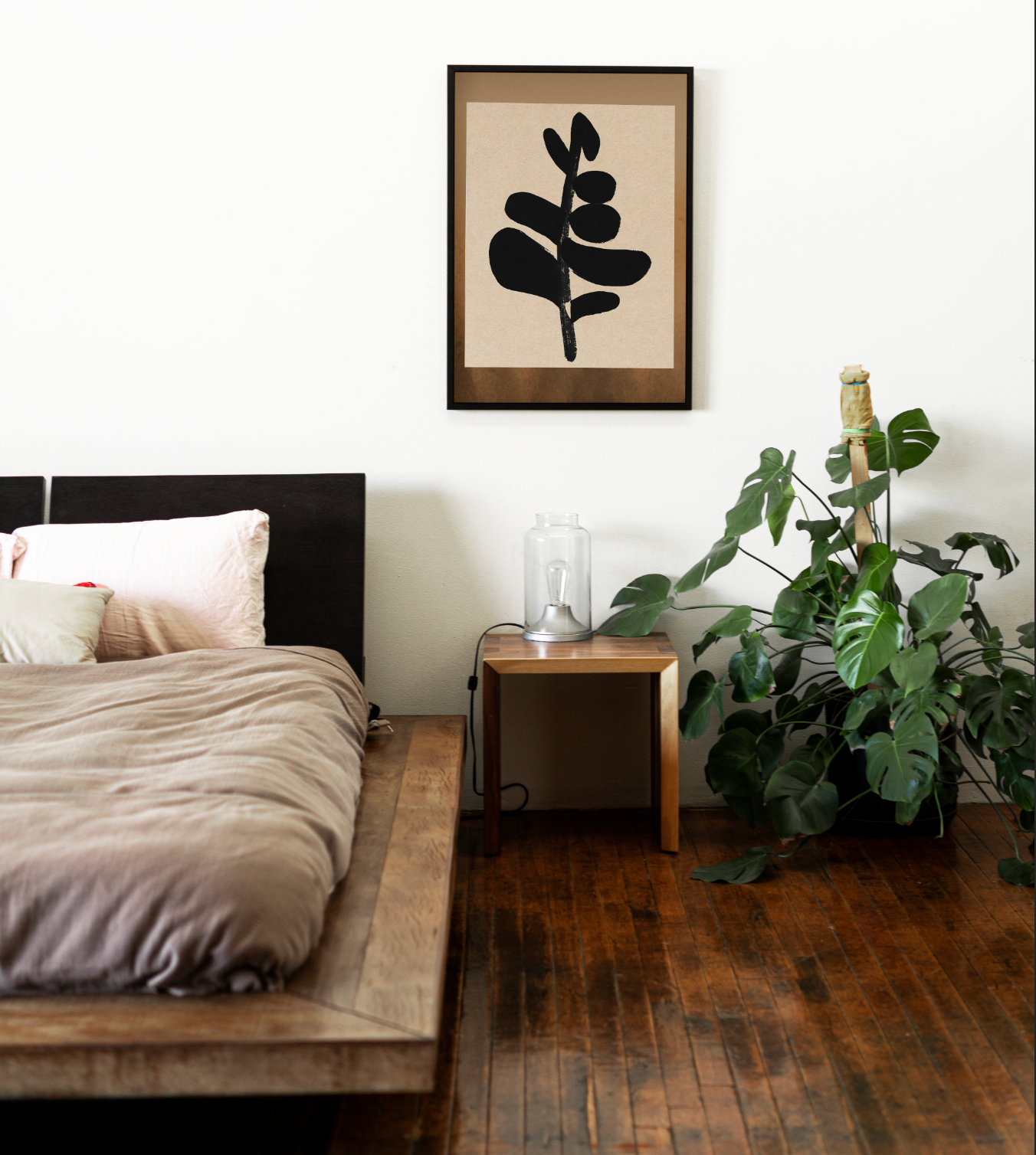 What I love about it: The contrast between the curves and straight lines, along with the deep dark strokes layered over a beige background creates the perfect eclectic and sophisticated piece for a room.