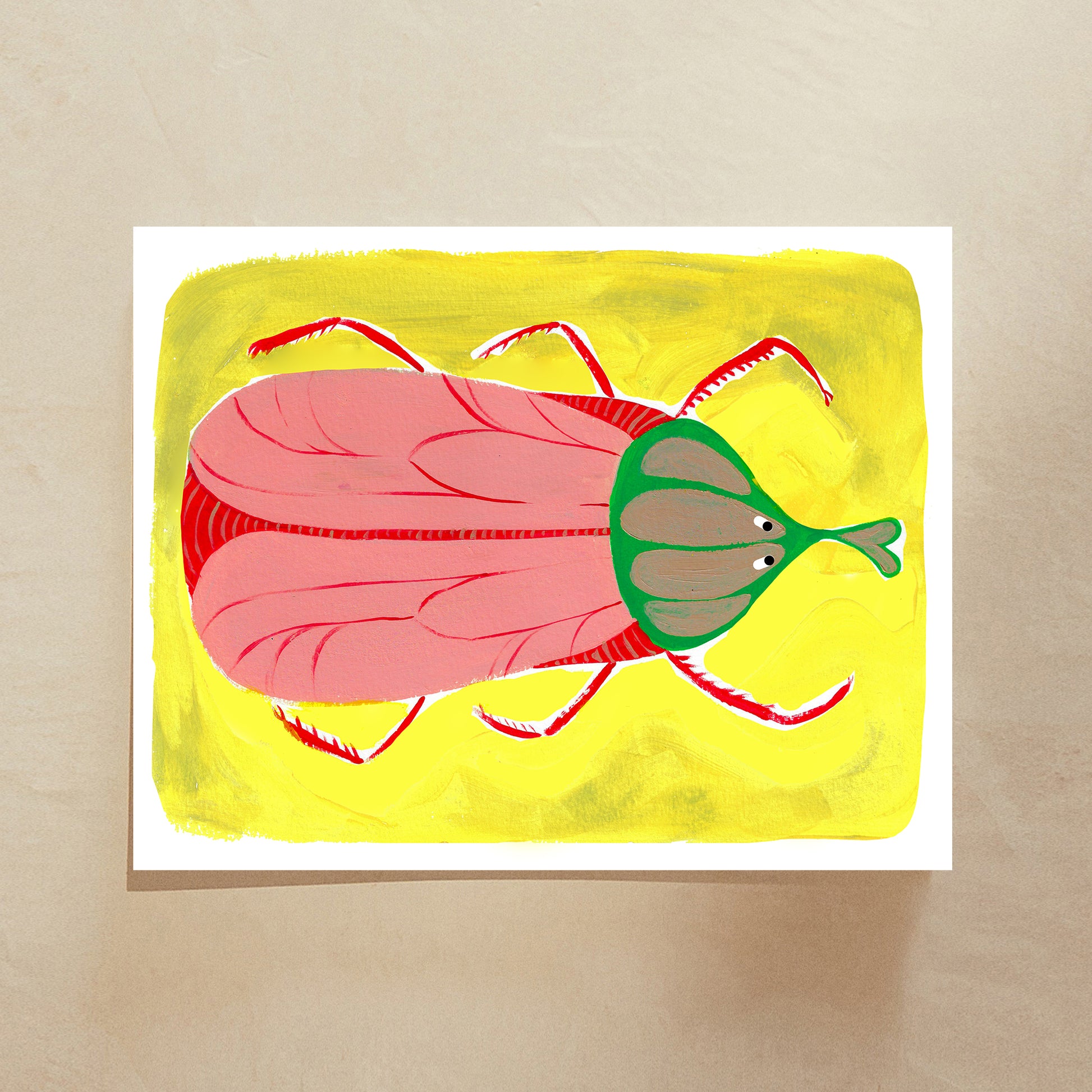 Title: "Beetle" originally painted in my home studio in Summit, New Jersey. Hand painted using watercolors and gouache on archival watercolor paper.